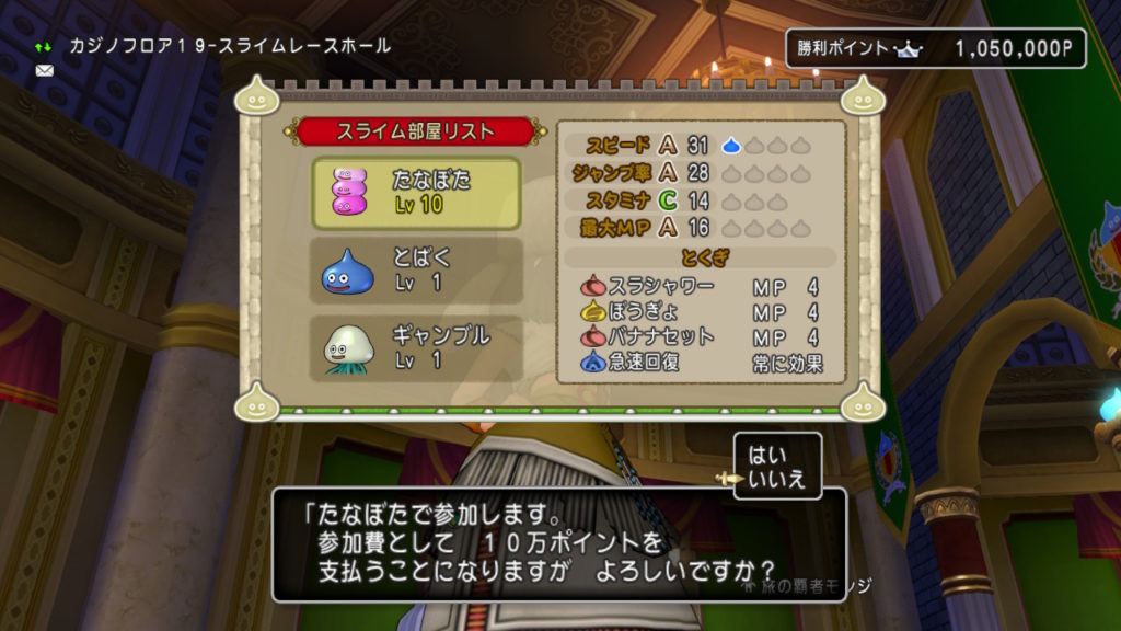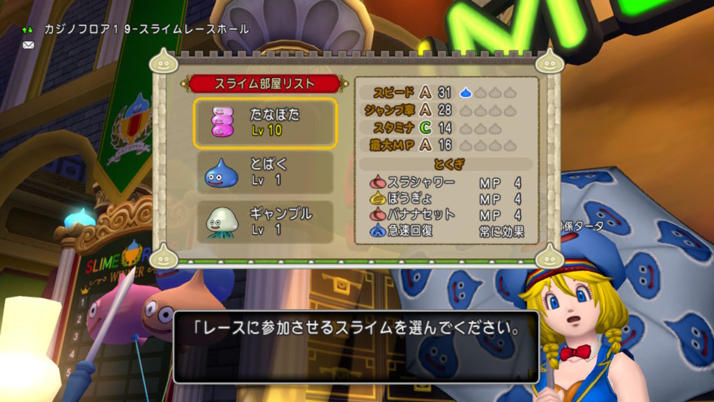 謎のエル子が教えてくれたのは、スライムレースでした。自分で育てたスライムをレースに出して、賞金を稼ぐというものです。